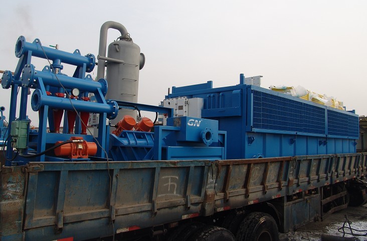 泥漿罐:6000 × 2300 × 1800mm,ZS83 × 108-2直線運動泥漿振動篩,LSB4 × 3-11立式沙泵。 鉆井泥漿回收系統 ? 泥漿系統裝車 ![]() |